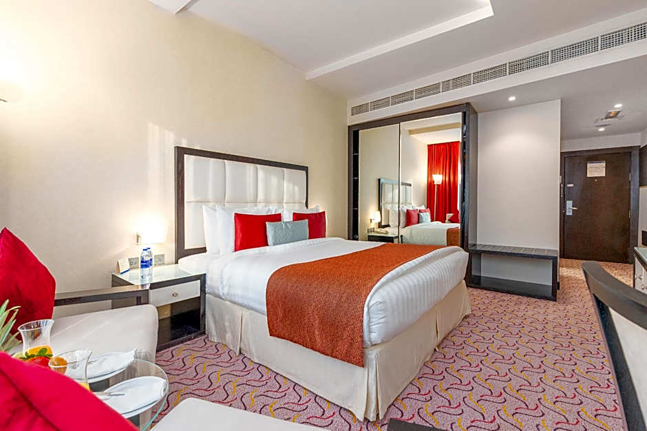 tilbyr et stilfullt 4-stjerners opphold i Dubais Riggat Al Buteen. Restauranten Staircase på stedet serverer lokal mat i en familievennlig atmosfære. Et oppvarmet, innendørs takbasseng gir et avslappende alternativ for å koble av etter en dag med utforsking av området.